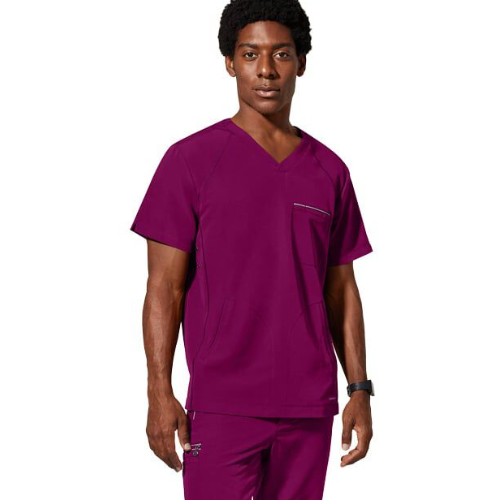 This scrub top is made for guys who want something tough yet comfortable for those long work shifts. It has a soft, stretch-fabric blend that lets you move freely without feeling squeezed. The V-neck cut gives a clean, classic look. Short sleeves with folded cuffs keep things simple and don’t get in the way when you raise your arms.